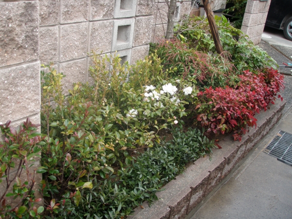 玄関廻りのブロックに造園工事を行いました。 限られたスペースの中に、自然味ある風景が出るように考え施工いたしました。